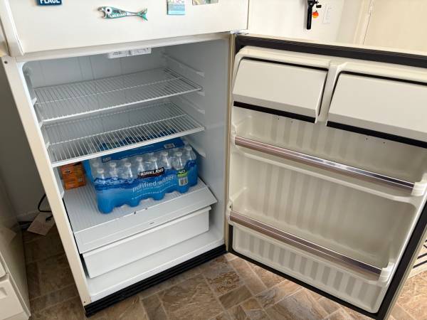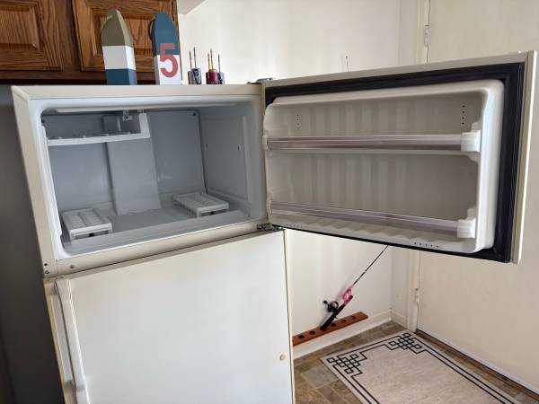 Working, clean GE Refrigerator/Freezer perfect for an apartment or second fridge located near East/near downtown. Off-white/almond color, smaller in stature - only 62" high - and 27" deep or 29" with the handles. Top freezer. You haul but we have dolly to help get it to your vehicle. Venmo or cash. $300/OBO