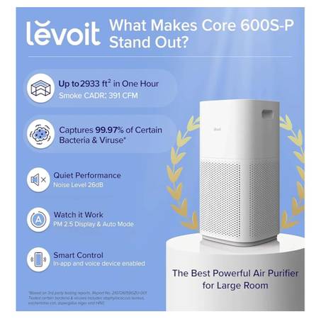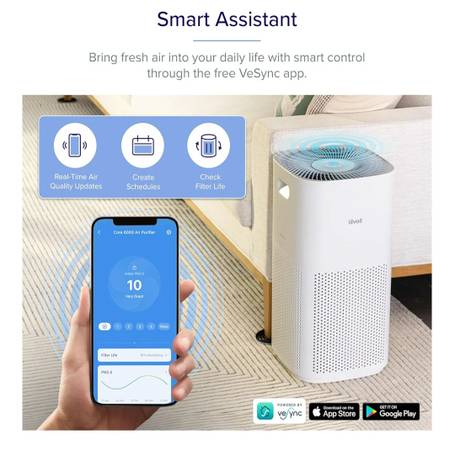 Levoit Core 600S-P Smart Air Purifier for whole home or large room. Used for ~8 months last year, daughter has moved into a different apartment and no longer needs it. Easy to control manually. There's an app you can use or you can use Alexa, but these features were never used by my daughter.