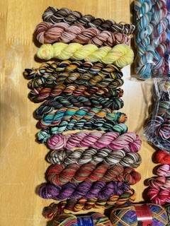 Huge haul of Sock yarn mini skeins. Various wool nylon blends for your fingering weight projects. Most of these mini skeins are hand dyed by various yarn dyers. These are great for a pop of color, a contrast edging, hem or a border. Or stripes, colorwork, granny squares, baby socks, hexipuffs, yarn swaps, and so much more!