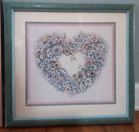 2. 'Like New' Framed and Matted Heart with a Butterfly and Flowers Print/Picture. Asking $18.00.