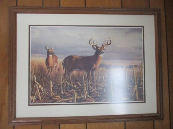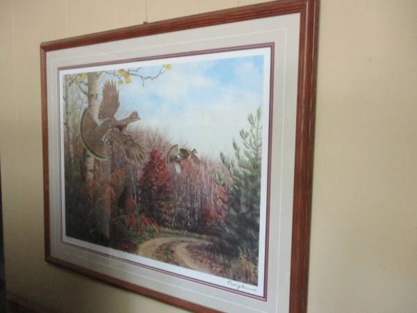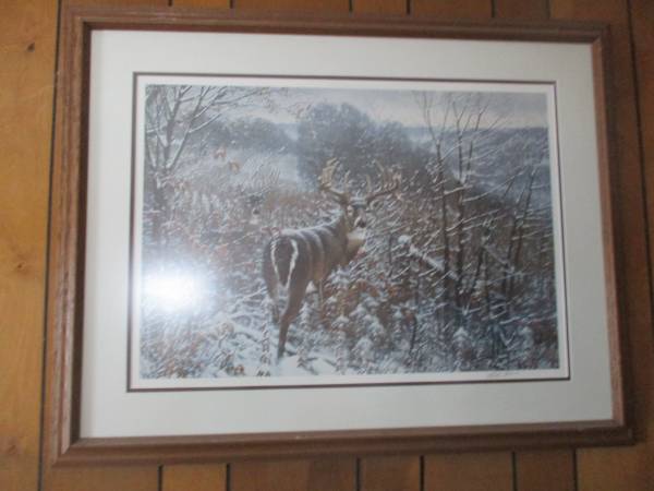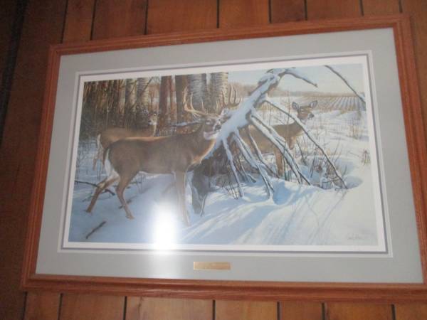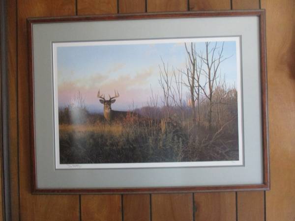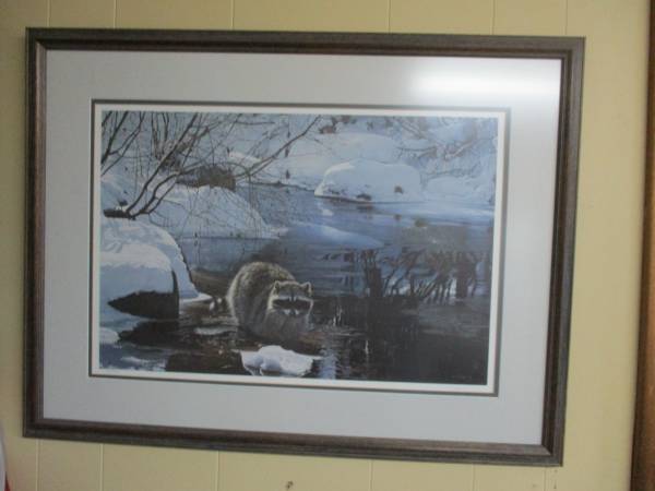 I have for sale an assortment of Framed Wildlife Art Prints I have purchased over the years and am now selling them as I am moving and I just wish to try and sell them. I have my treasured framed deer print called Stepping Out by Ron Van Gilder. This and all of the other prints have been sold out and our now only available on the secondary markets. $500.00 for this framed print. I also have other deer framed prints by Jim Hartman, Don Klotzke, and Michael Sieve. I have an Owen Gromme Grouse framed print and a T. Isaac Raccoon framed print called Cool Pause. All have non glare glass with wood frames. These other prints I will sell for $200.00 to $250.00. For more information, please call or email me. Thanks. Randy