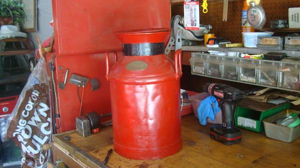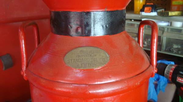 this can is shape like a milk can the black band says standard oil cash only reply to ad or call show contact info