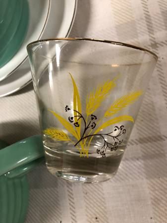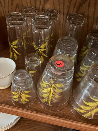 Vintage Golden wheat pattern. 23 Glasses in four sizes. Four plates and two cups are also included. Located between Rio and Columbus, in Doylestown. Cannot ship. $60 for entire set or best offer.