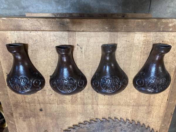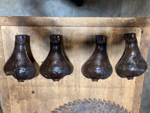 Four Round Oak metal legs. 2 have chips out of them. Cleaned up nicely.