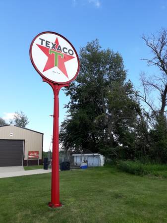 ORIGINAL 72" PORCELAIN TEXACO SIGN W/ 18 FT. GAS STATION POLE PUMP OIL - $9,500 (LENA, IL)