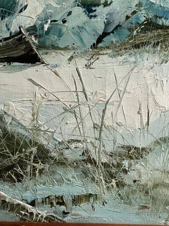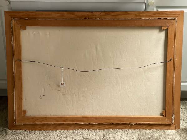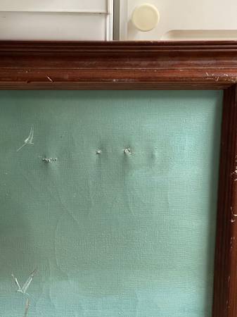 • Condition: Overall very good vintage condition, but there are a few small spots of damage to the canvas (pictured). Frame shows light wear consistent with age.