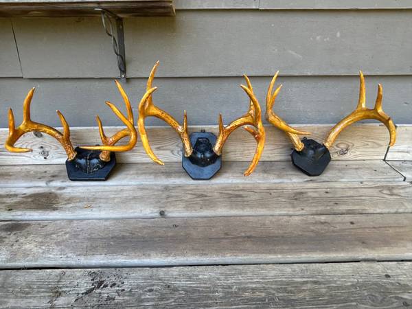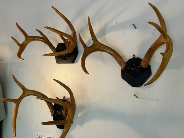 Add a touch of rustic charm to your cabin, lodge, den, or man cave with this set of three deer antler mounts. •Two are impressive 8-point racks •Two are classic 7-point racks •3 are mounted and...