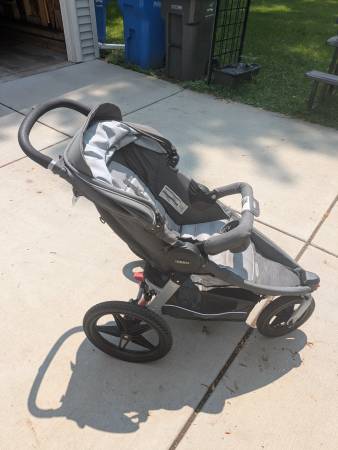 Graco Jogger Stroller System for sale. This jogging stroller comes with a clip in carrier for infants and two car seat bases for the carrier to clip into. Everything was manufactured in 2020 and has plenty of useful life left. Nothing was involved in an accident and is in good used condition. This is an older model that is no longer available on Amazon but the link below is to either same or very similar model. I washed the carrier on a sanitizing setting. The stroller folds pretty flat. The bigger wheels make it very smooth and easy to push while walking or jogging. Our kids loved it but have outgrown it.