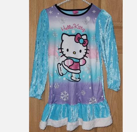 EUC, Smoke free. Cash only pls. Hello Kitty Sz 10 Girl Blue Snowflake Long Sleeve Ruffled Hem Nightgown Dress