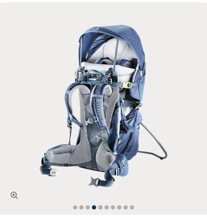 The pro child carrier comes with an integrated, separately useable daypack for quick runs to the changing room. There is also a fixed sun roof and a mirror for a quick rear-view of the child on the back. The load is transferred perfectly, thanks to the new Aircomfort Sensic Vario mesh back system. The child carrier fits snuggly while the back is fully ventilated. The large, soft pillow gently braces the tired child‘s head even in the corners and supports a relaxing nap. The side entry and the easy-to-use harness system ensure safety, guaranteed by the TÜV GS safety seal of approval.