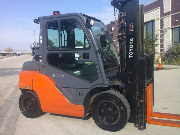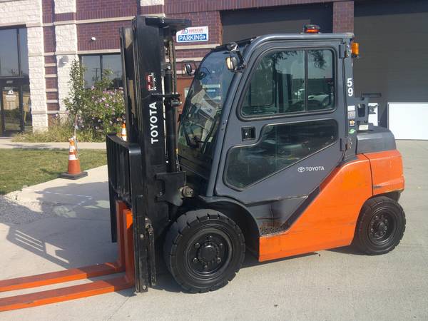 Pneumatic 2020 8K LB. Capacity Toyota Forklift, Model # 8FG35U, Propane Gas, Solid Pneumatic Traction Tires, Full Cab With Removable Doors, Ideal Yard Truck, 3223 Hrs., Fully Loaded, Heater, Fan, Windshield Wipers, Digital Display, Lights, Strobe Light, Back Up Alarm, Premium Seat, Turn Signals, Rear Blue Safety Spotlight, Onboard Fire Extinguisher, 3 Stage Mast, Lifts 15'-7" High, Side Shift, 60" Forks, LBR, Red Side Running Lights, Freshly Tuned Up And Serviced, We Can Offer Delivery, Come Take A Look At The Warehouse, Asking $20,495., Contact Is Tim.