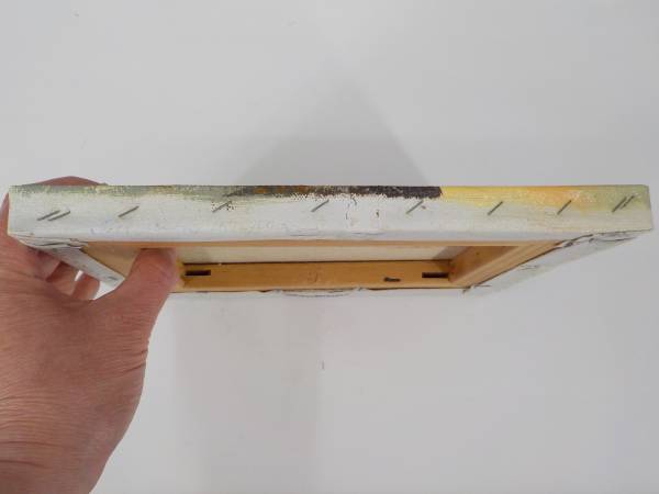 ORIGINAL WINTER PAINTING CANVAS ONLY APPROXIMATELY 8"x10" COVERED BRIDGE WAGON BARN WITH MOUNTAINS AS A BACKDROP SIGNED BY ARTIST ROY WOOD The sawtooth picture frame hanger is stapled on NOT...