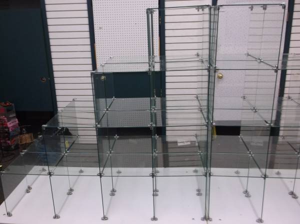 Retail Glass Cube Shelving Unit 2 at 6 X 4 feet or 1 at 12 x 4 feet...
