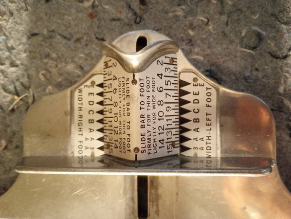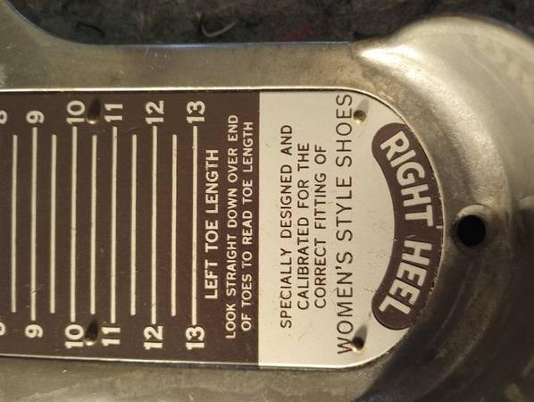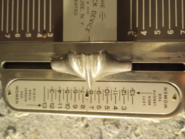 Vintage woman's shoe sizing tool: "The Bannock Device." If ad is showing, it's available. Reply with phone number by email/ chat feature for prompt call back.