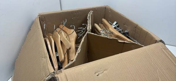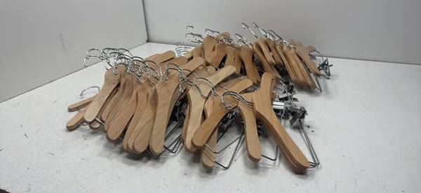 (Price is for all) Qty.50, 12" Beverly Coat Hanger co. T-150910 Hangers $50 for all 12” length, clothing wire and clips, rubber grip strips, metal hanging hooks Best availability is 8a to 3p...