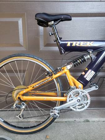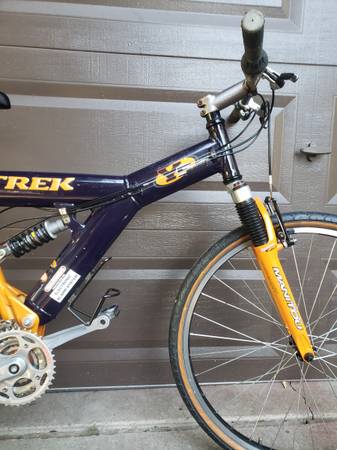 1997 Full Suspension Unified Rear Triangle Design Trek Y5 with Full Suspension Quality Manitou Spyder Fork. All Hand-built in February 1997 in Waterloo Wisconsin, Not China Junk! New tires and Kenda Heavy Duty inner-tubes, pretty good brake pads. Both derailleurs are adjusted perfect and shift All Gears. Brake pads are adjusted and centered well. SN VTU2171198. Clean, Smooth, Tight, Rock Solid. Kept room temperature in my basement. Randy show contact info