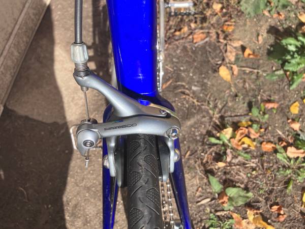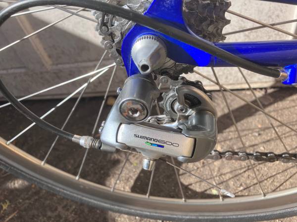 57cm Mid-90’s Giant Cadex CFR-1. The CFR-1 is a carbon fiber road and triathlon bike and was part of Giant’s Cadex line, which was introduced as a premium brand for high-end bicycles, similar to how Toyota uses Lexus. This is one of the first mass-produced carbon fiber bicycles. It’s in excellent shape and looks like it’s barely been ridden. A cool collector piece or retro lightweight rider. The frame was constructed using Giant Custom Carbon Fiber tubing with 6061 aluminum lugs, and the bike weighs approximately 22.5 pounds (10.2 kg). Full Shimano 600 tricolor groupset featuring STI dual control levers, 8-speed cassette, and aluminum chainrings. Cinelli stem and bars. Continental Grand Prix 4 season tires. Tuned up for this sale by a professional bike mechanic at Superior Cycles (www.superiorcycles.net).