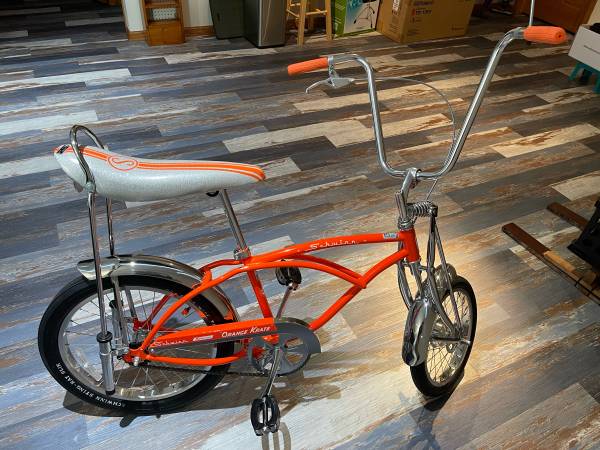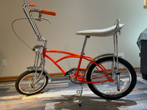 This schwinn bike has touched pavement for just 0.2 miles! Like new because it has been kept new. It has lived indoors, away from direct sunlight. Phenomenal, nostoligic eye-candy!!! I haven't ridden it outside, but occasionally sitting on it in my living room and seeing it every day makes me feel warm and fuzzy, reminding me of my carefree childhood. It could do the same for you, perhaps? Or, share your nostalgia with your child or grandchild.