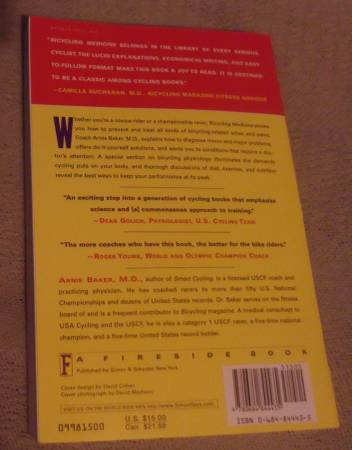 BICYCLING MEDICINE, Arnie Baker, M.D., 320 pages 6x9.25 x7/8 inch, Simon and Schuster New York, 1998, ISBN 0-684-84443-5, Sell for $10.