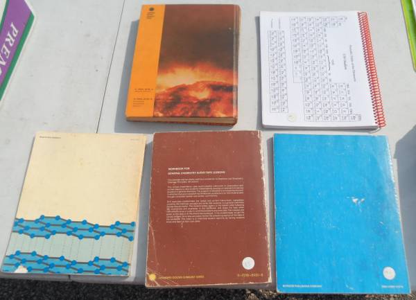 FIVE BOOKS: General introductory Freshman text (UW-Madison 103/104), Lab 103 Manual, Form and Function (Organic Chemistry), Study Guide to Chemistry and Life, Workbook for General Chemistry. All Five Books For $10.