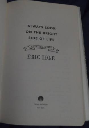 ERIC IDLE: ALWAYS LOOK ON THE BRIGHT SIDE. A Sortabiography by Eric Idle. Copyright 2018 by Rutland California Weekend, Inc., Crown Archetype Publishers, ISBN 978-1-9848-2258-1, First Edition Hardcover Book, 290 pages. New Retail $27 US, $36 Canada. Excellent Condition.