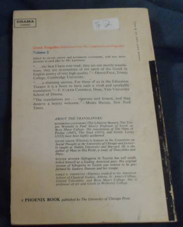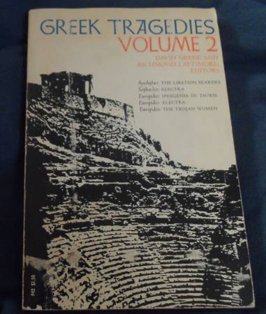 GREEK TRAGEDIES, Vol2. David Greene and Richmond Lattimore Editors. No ISBN, Chicago Press Published 1960/1969 8th Printing. Paperback $2.