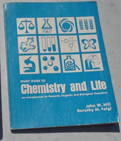 STUDY GUIDE TO CHEMISTRY AND LIFE; An Introduction to General, Organic, and Biological Chemistry by John W. Hill and Dorthy M. Feigl, 148 pages, 8.5x11 x3/8 inch, Burgess Publishing Company, ISBN 0-8087-3107-6 , Used, Sell For $5.