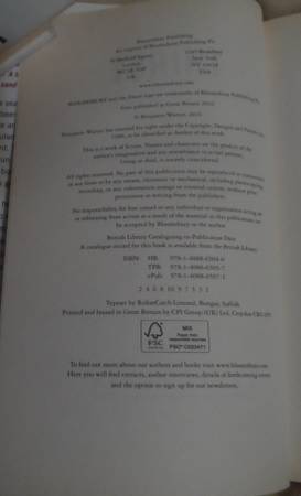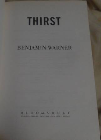 THIRST: A book by Benjamin Warner, work of fiction. A mysterious disaster cut off water and power. What will the people do?? Bloomsbury Publishing, Printed in Great Britain, 2016, ISBN 978-1-4088-6504-0, Hardcover Book 287 pages.