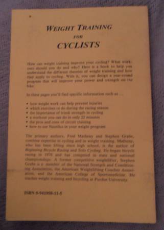 WEIGHT TRAINING FOR CYCLISTS, Fred Matheny, Stephen GrabenAndrew Buck, and Geoff Drake, Book 78 pages, 6x9x0.25 inch, Vitesse Press, 1986, ISBN 0-941950-11-5, New. Plus an article from Bicycling magazine and a RUNNER magazine on weight training..