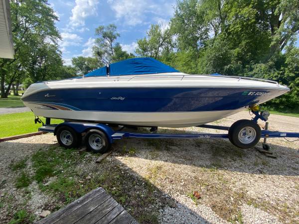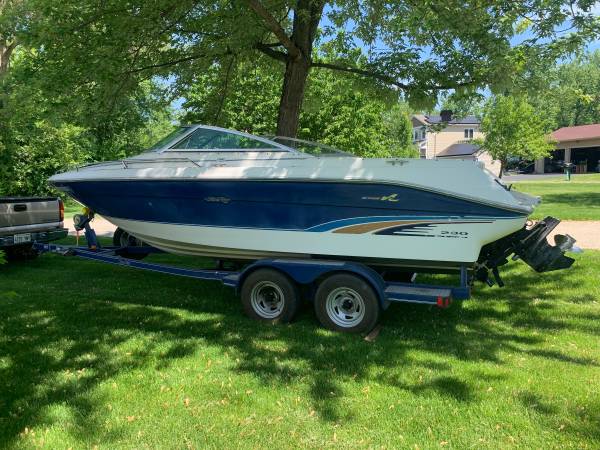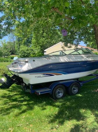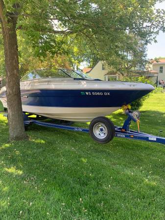 Hate to sell her, but it’s time for a pontoon. Nice boat. I rebuilt the 350 5.7 mercruiser from the crank up, and has an Alpha One out drive. I had the sun pad, a seat, and the bow backrest redone so they are new. The rest of the interior is fine. I have the carpet which is okay and it’s good for a pattern as well. Boat has a Bimini top. Glass is good, chrome is good. The hull is in great condition. The trailer has brakes, maybe 100 miles on it, and the lights work and tires are good. Anchor, stereo, 2 new batteries, mooring cover, lots of storage, overall she is a really nice looking, clean, boat with a new motor. I’m motivated to sell as we are in the market for a pontoon boat now. Thanks for your interest.