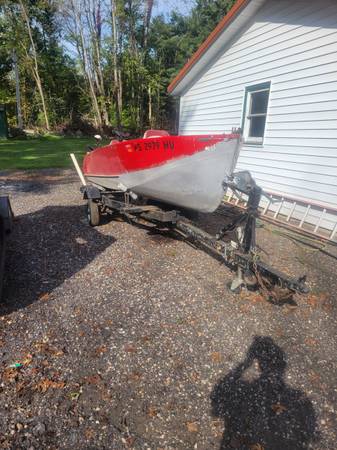 Late 50s Lone Star King Commander deep v15 ft fishing boat boat is in good shape does not leak Etc.. comes with everything shown in pictures 9.9 horsepower Johnson 40 lb Minn Kota trolling motor. Trailer is in great shape has bearing Buddies LED lights Etc. Boat has been sitting for 7 years in an outdoor shed mice did build a nest around the engine will need coil packs and fuel lines to run.. we recently bought a new used boat and I have no where to store this indoors anymore.I have valid registration and title. Don't judge the age on the quality of the boat we used this for 6 years and had a great time in it. Asking $500 or make me an offer show contact info
