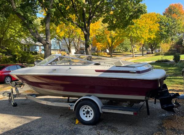 1994 Maxum 1800SR, only 387 hours! This boat is a lot of fun and easy to tow. 18 foot boat, seats 7 and still hits 45MPH. Very good on fuel, you can spend the whole day on the lake without needing to refuel.