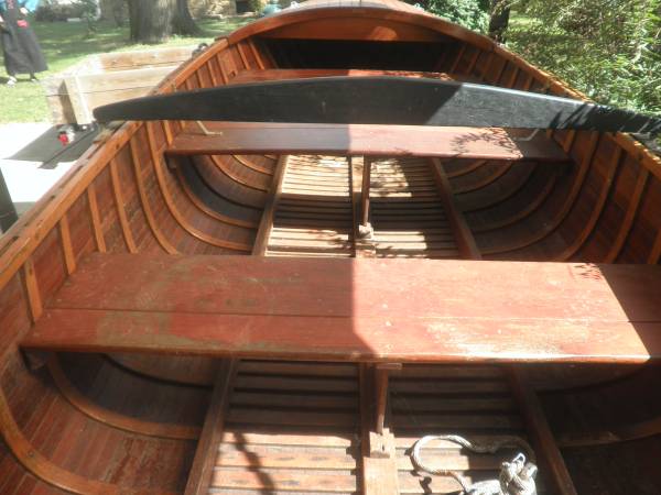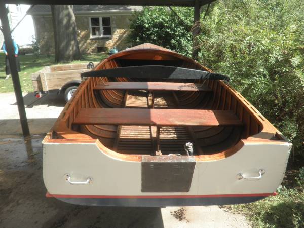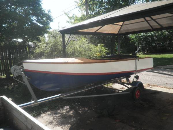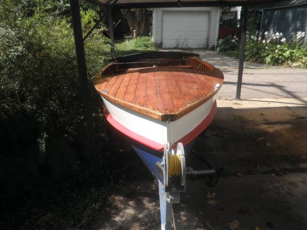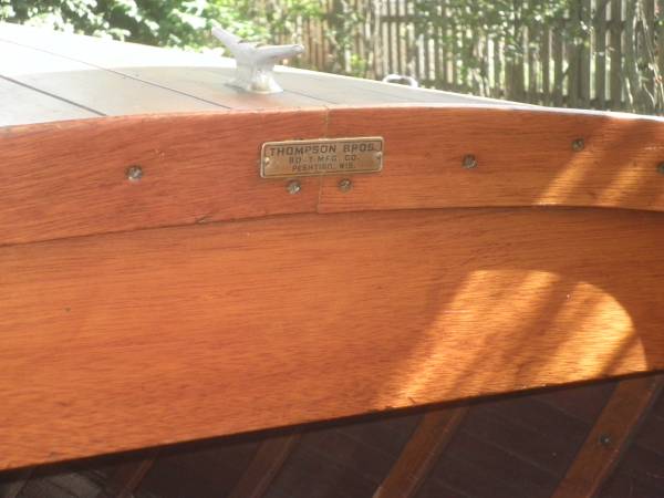Selling a beautiful Thompson wooden boat that is attached to a sturdy boat trailer. It comes with a nice cover. The boat was manufactured in Peshtigo, Wisconsin and is in very good condition. It measures 13 feet 5 inches long. Asking $3550 or best offer.