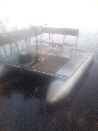 12' pontoon with a 5'x6' platform with seat, 55 lb thrust endura max motor 6 months old. don't know brand might be home made works great for 1 big man or 2 medium. $1400.00. with a trailor made for...