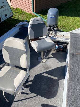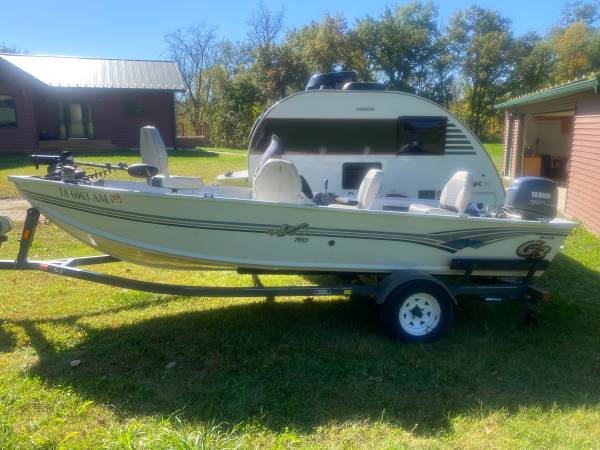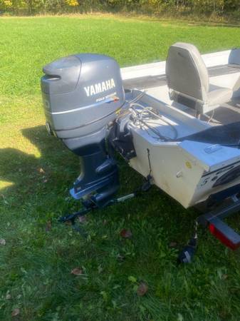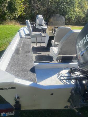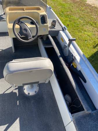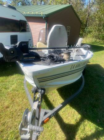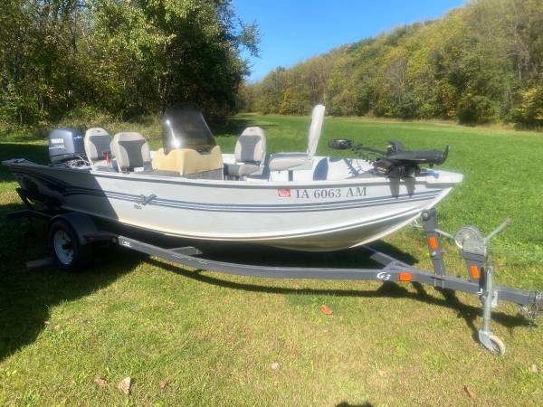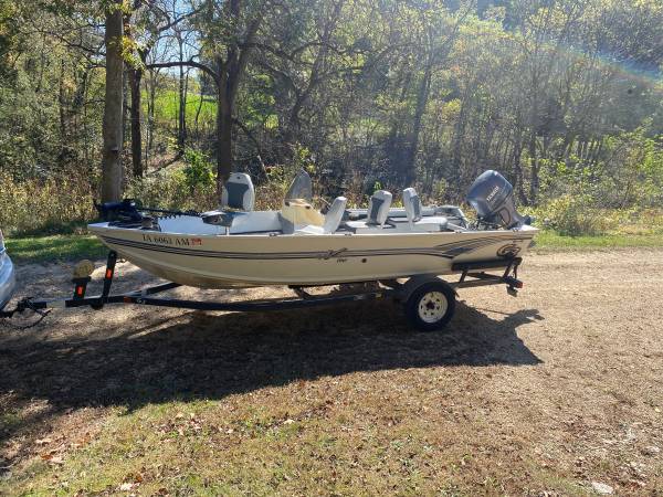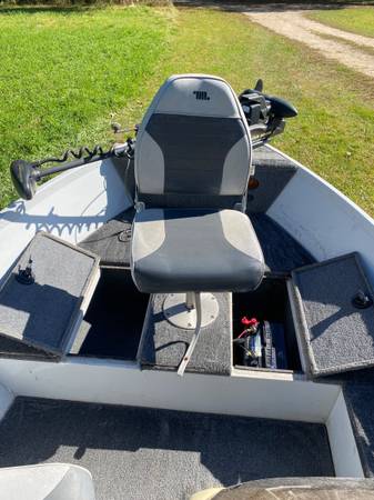 Runs good and very quiet. Foot operated trolling motor on front that works good. 2 batteries on boat. Lots of boating stuff included. Trailer is nice. Cash payment and firm price