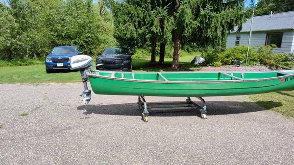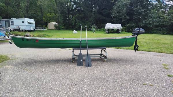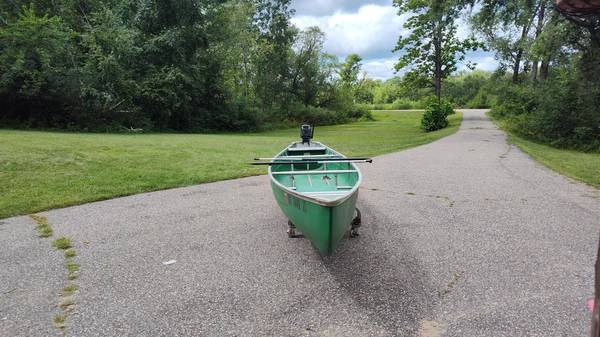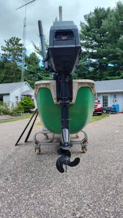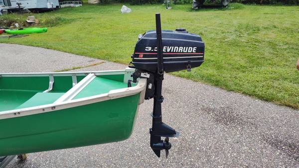 Includes aluminum T handle paddles, excellent condition, square back stern, I have a 3.3hp Evinrude is self contained or 5hp Evinrude has tank and fuel line. Both motors run excellent. It really flies with the motor on it!