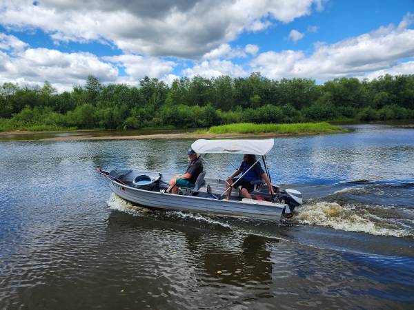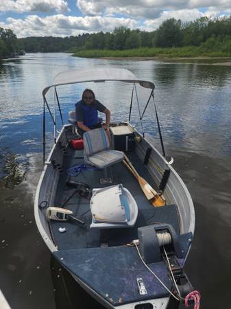 Mirrocraft 14 ft fishing boat No leaks 25hp Evinrude Includes trailer Oars Trolling motor Anchor mate Deep V Front and rear storage Rod holders and rod storage Bimini $1100 or best offer Call or...