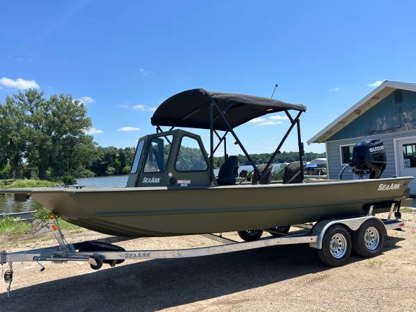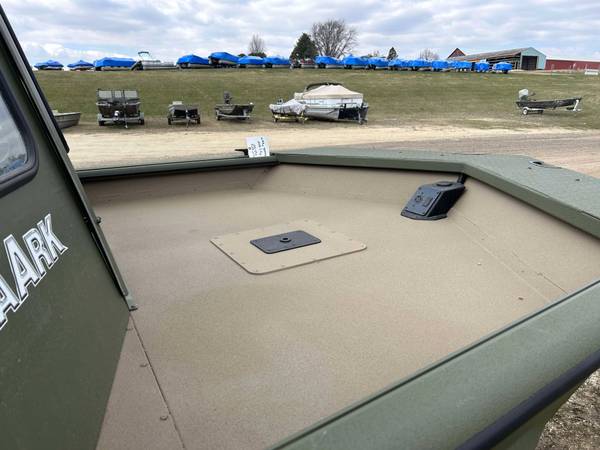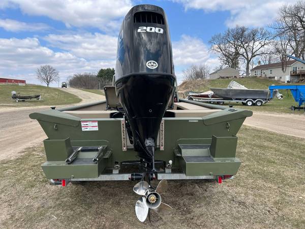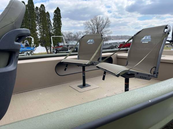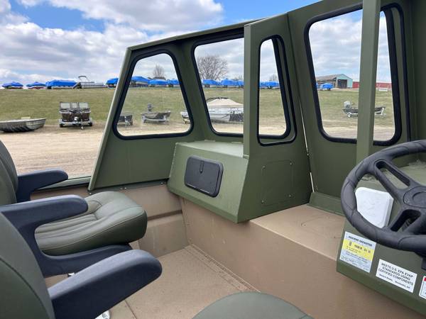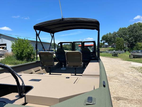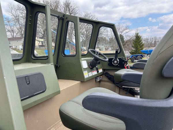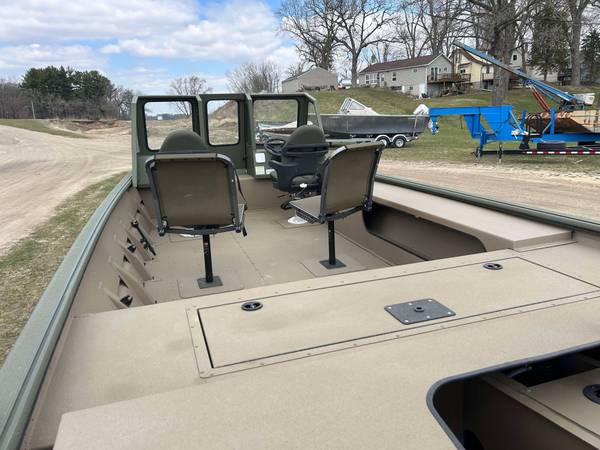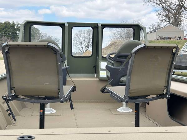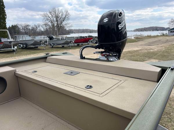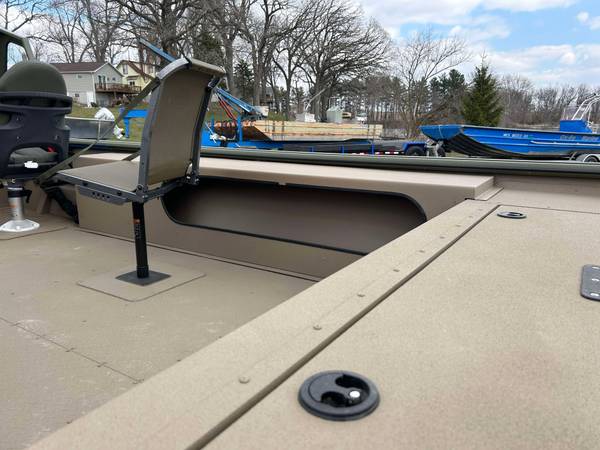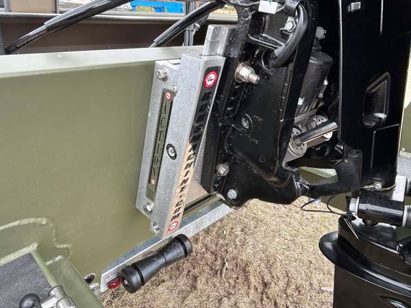 Installed Options: Tan Line X Interior, SeaStar Hydraulic Steering w/Tilt Helm, Power Pole Brackets (2), Transducer Brackets (2), Ladder on Pod, Timber Runner Package. Bob's Action Hydraulic Transom Jack, Millennium Seats w/Pedestals (2), Seat Bases w/Doubler Plates in Floor, Captains Chair Slider, CUSTOM Starboard Side 8' Rod Storage. Upgraded Electrical w/8 Position Switch Panel with Horn, Battery Switch, USB/12V Power Point Panel (Salt Water Ready System), Bimini Top w/Quick Release Brackets.