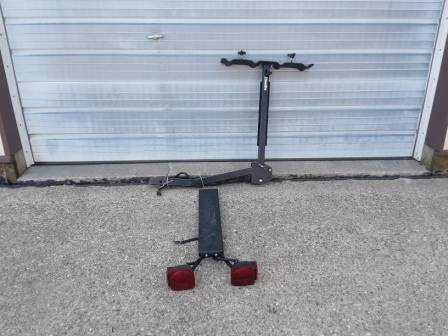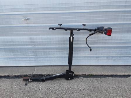 Drawtite bicycle rack. Holds up to four bicycles. Works with a two inch receiver hitch. Lights work when hooked up to a flat four wiring harness.