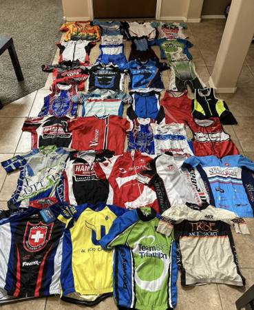I currently have over 400 cycling jerseys, kits, shorts and bibs in all sizes - both men’s and women’s. The majority of them are used but I do also have some that are brand new. Most jerseys are $25 but I’m also willing to cut a deal if you’re purchasing multiple jerseys. The pictures obviously show only a few of the jerseys that are available so feel free to reach out for additional info and pictures. I also add new jerseys at least once a week so feel free to check in regularly or let me know if you have any special requests.