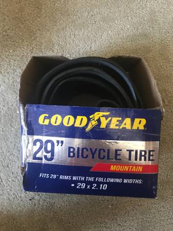Brand new Goodyear 29 x 2.10 bicycle tire. Packaging has some damage but the tire is brand new. $12 Will include brand new inner tube for additional $5 Will also install for an additional $5