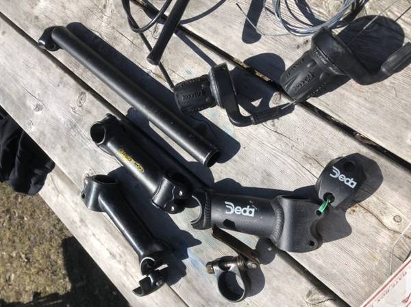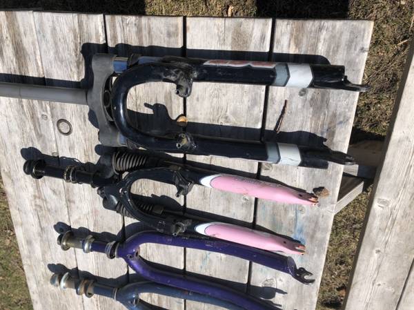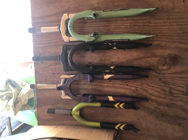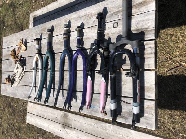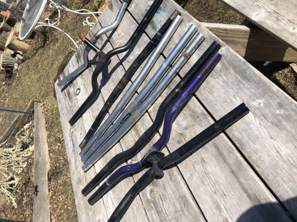 Straight handlebars $5 Forks $10 Drop handlebars $10 Reflectors $1 Handlebar stems $5 Kick stands $2 Brake levers $5 set Gear shifts 5 set Pedals $5 set Derailleur front and rear $5 each Other bike...