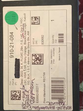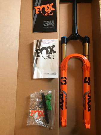 A brand new, in the box, never installed Shiny Orange 2022 Fox Factory 34 suspension fork. For 29" wheels, 140mm of travel, Float Evol air spring, Grip2 damper, 110mm Kabolt thru-axle, uncut tapered steer tube. Comes with the User Manual, Tuning Manual, 3 extra spacers, thru-axle, star nut, and a Fox decal.
