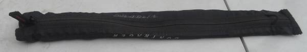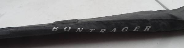 DOWN TUBE FENDER: A Bontrager Brand Satellite Plus Model, mini down tube nylon fender. Fender fold up and zippered shut when not needed. Unzipp and fold out when needed. Zip/cable tie, included, to down tube to block spray from front wheel in wet and/or muddy conditions. Size: Open 13x5”, closed 1.5” wide.