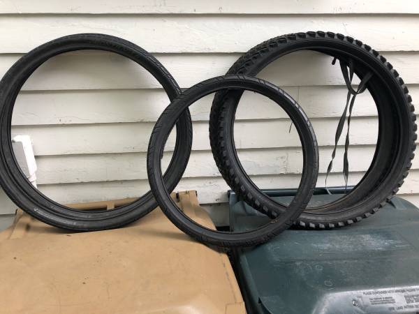 26 inch tires Matrix cdx 26 x 1.90 $10 26x1.95 unbranded mountain bike tire $10 24 inch tires Set of Bontrager H2 24x1.50 $20 Set of Tiandi 2 tires 24x1.95 and 1 working inner tube $15 20 inch tire...