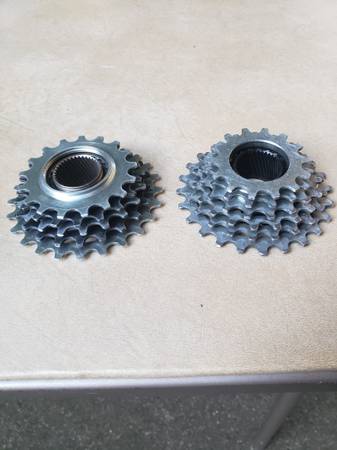 2 Old School, Top Quality Sachs Malliard Atom Nickel Helicomatic Freewheels. 6 speed is 14-24 gear ratio off a 1982 Motobecane, 5 speed is 17-24 gear ratio off a 1979 Peugeot. $10.00 For Both. Randy...