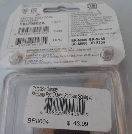Shimano F03C Metal Cooling Fin Brake Pads Ice Tech 2pcs for XTR XT SLX Deore. Have two new/unused factory sealed packages.