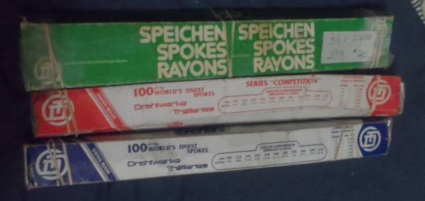 14ga. 298mm straight gauge stainless steel spokes, have 69 spokes and nipples in blue box. $40.