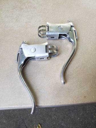 Vintage Slotted Out Dia-Compe Road Bike Brake Levers, Complete with cable guides and handlebar straps. $5.00 For the Set. Randy East Madison!