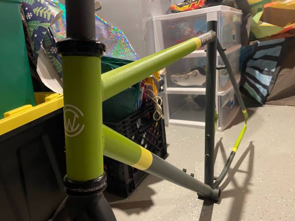54cm (medium) steel frame- custom painted Orign 8 frame. 40$, Green/grey color scheme. I had two and built one up as a single speed cyclocross bike… it’s super fun to ride. Steel is real! Full bike...